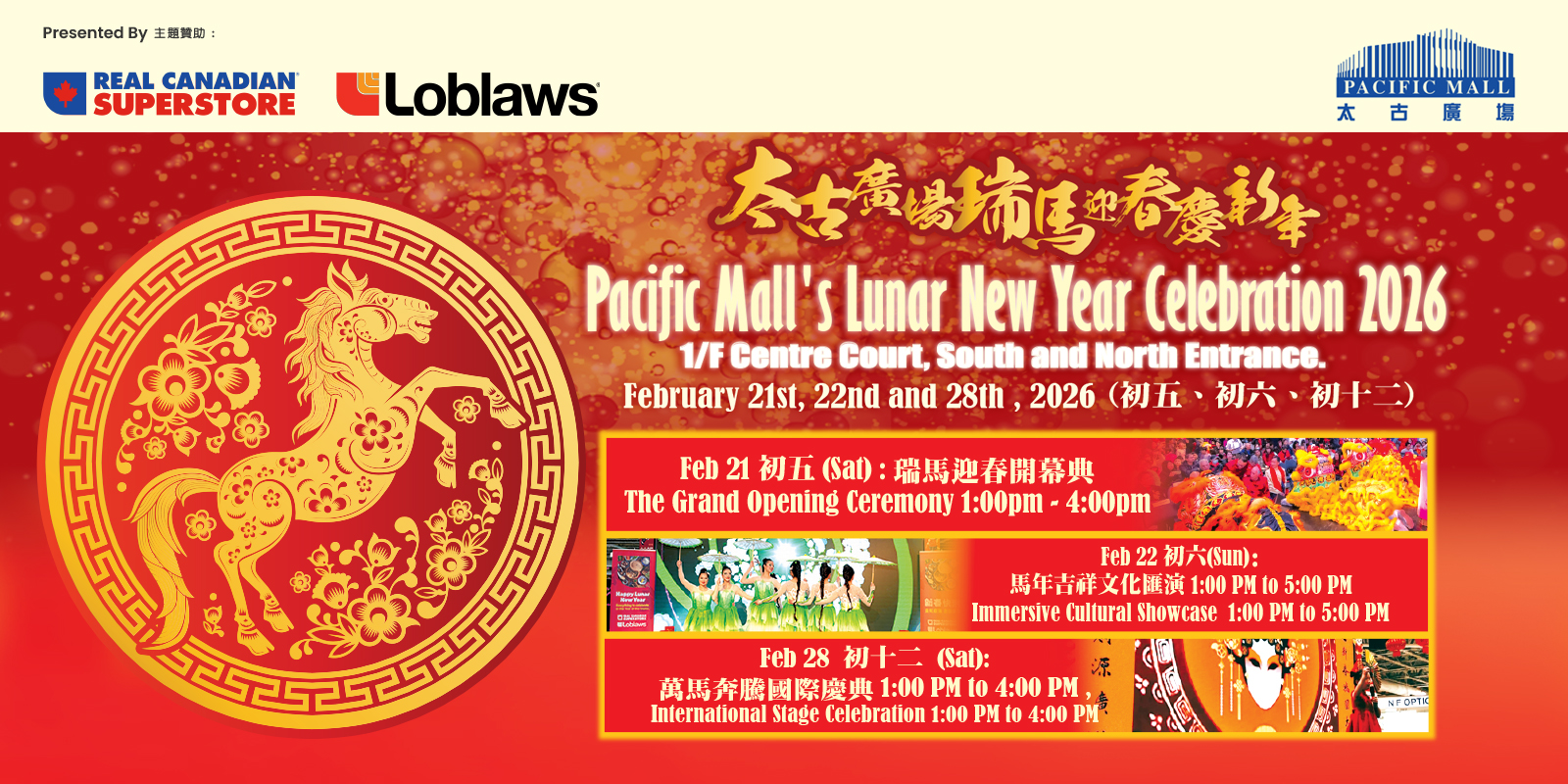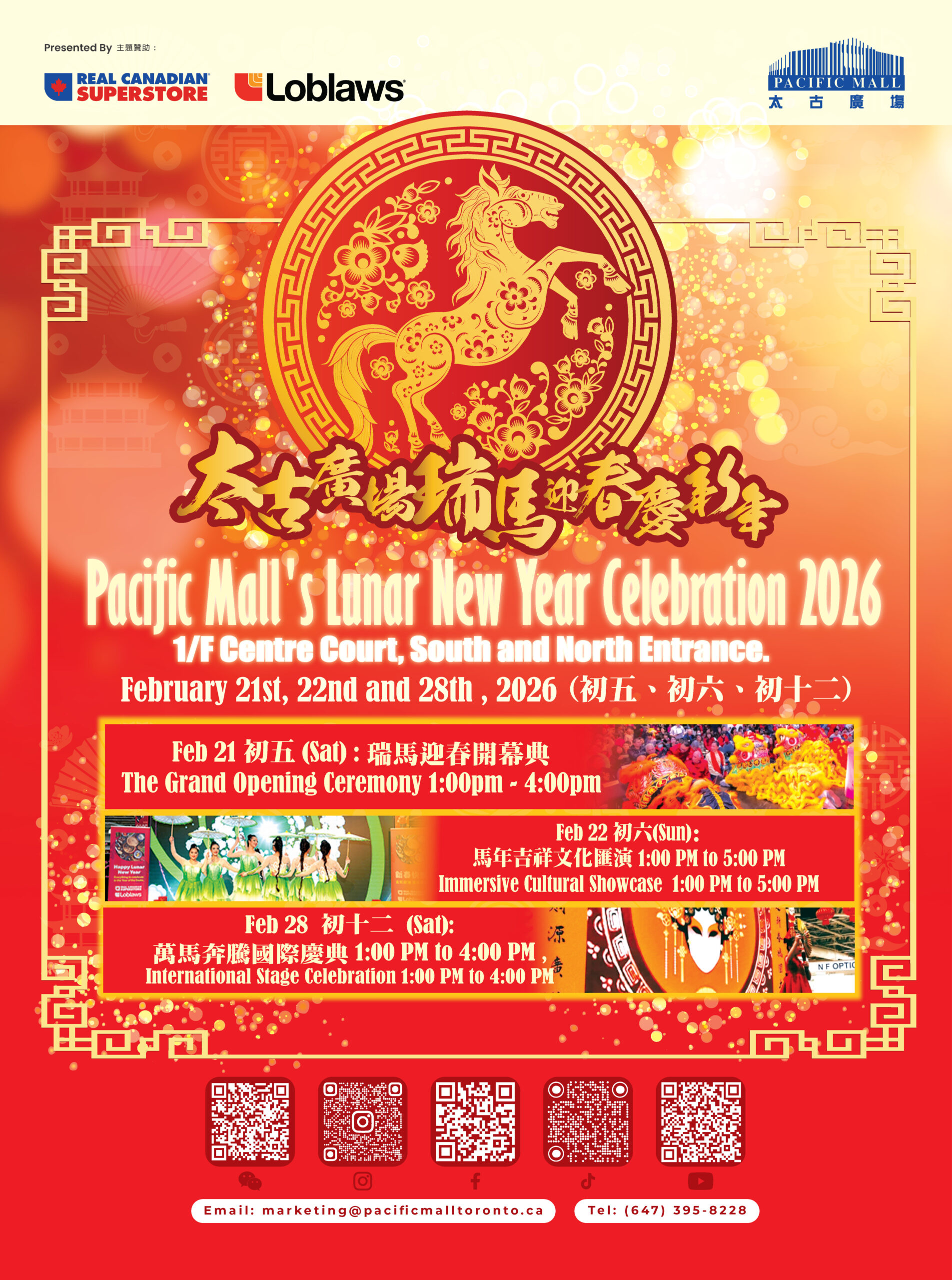 ! Join us for a festive lineup filled with vibrant performances, lion dance (FEB 21 & 22), immersive experiences, marketplace, and joyful giveaways